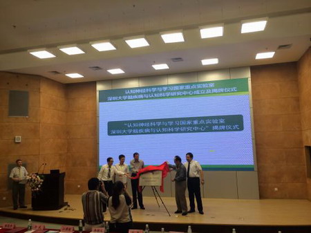 5月30日上午,深圳大学与北京师范大学认知神经科学与学习国家重点实验室联合组建的“脑疾病与认知科学研究中心”挂牌成立。中国科学院院士李朝义,北京师范大学认知神经科学与学习国家重点实验室主任李武,香港大学脑与认知科学国家重点实验室、辽宁师范大学、兰州大学、华南师范大学、北京大学心理学系等在认知神经科学和脑疾病研究领域有重要影响的著名专家学者出席了揭牌仪式,其中龚启勇、方方等六位专家在随后举行的“认知与情感障碍的脑机制与影像学”学术研讨会中发表了主题演讲,反响热烈。