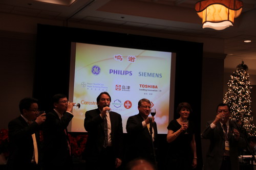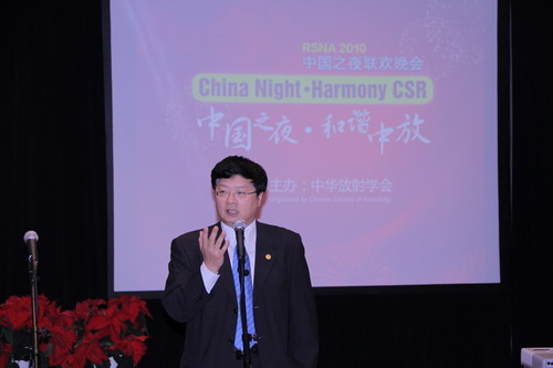 学会主任委员郭启勇教授、候任主任委员冯晓源教授、各位副主任委员,以及GE、西门子、飞利浦、锐柯等公司的中国区领导悉数出席,中国之夜共吸引了与会专家、公司代表以及在美华人放射专家等400余人参与。致辞中,郭启勇院长表示,随着国家经济的发展,医疗需求的增加,中国的医疗器械市场吸引了世界各地的广泛关注。而我们的医疗科技水平亦不断攀升发展,RSNA收录的中国人论文,从无到有,到今年的176篇,代表着中国影像医师在RSNA这个世界学术舞台上的话语权不断增强,我们已经从旁观者变成轻舞飞扬的表演者。