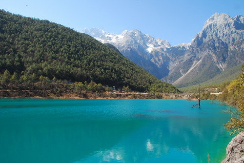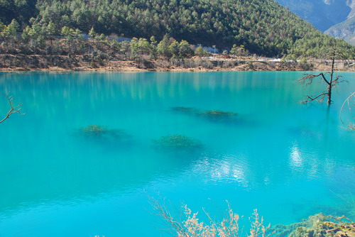 一踏上丽江的土地,迎面就被温暖的阳光笼罩,呼吸着新鲜的空气,开阔的视野被丰富的色彩填充,心情立刻就变得柔软起来。入住到早已预定好的酒店内,我们随后就来到了丽江市内的“黑龙潭”公园,公园内有近76万平方米面积的湖面,形状就像一弯新月,湖中心有木雕的亭子,庭与湖岸另一侧各有一汪珍珠泉出水口。公园内建筑风格古朴典雅,那是因为纳西人崇尚自然,所以造型尽量保持事物的原型,以求人与自然的和谐一体。值得一提的是,珍珠泉出水口处,有无数小泉眼,对着泉水大喊一声,在声波的震荡下,湖底的小气泡从小泉眼中不断涌出,造成湖面微波荡漾的奇妙景观,让人大开眼界。