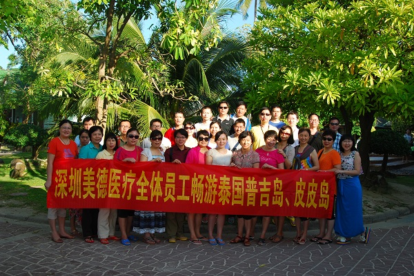 2014年,是美德医疗成立的第十个年头,这一年,公司业绩更上一层楼;这一年,我们的产品总数和销量有了更大的突破;这一年,我们的员工人数达到30人!为庆祝公司成立十周年,美德医疗全体员工于2015年1月10日-14日飞往泰国普吉岛,在那里度过了难忘的五天四晚,尽情领略了普吉岛、皮皮岛的美景,心情畅快无边!