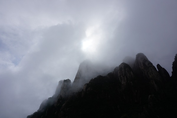 云海雾涛是夏季的三清山特点之一,那云雾,时而汹涌奔腾,时而轻柔曼妙,或聚或散,或浓或淡,千姿百态,神秘莫测,令人浮想联翩。漫步西海岸的栈道,眺望远方,云雾时聚时散,山峰若隐若现,前一秒你还觉得自己将她看了个清清楚楚,后一秒,一阵云雾过来,她又藏身其中,变幻莫测,来去无踪,白如雪,软如棉,淡似薄纱,浓如棉絮,静似玉兔傍地,动如骏马奔腾,或高挂树梢,或飘飘悠悠于天际,或奔涌于山谷,仿佛伸手可掬,却又触摸不到….抬头是云,低头是雾;远处是云,近处是雾,云和雾,充盈于天地之间。这云里雾里,为三清山平添了几分娇羞和神秘感。