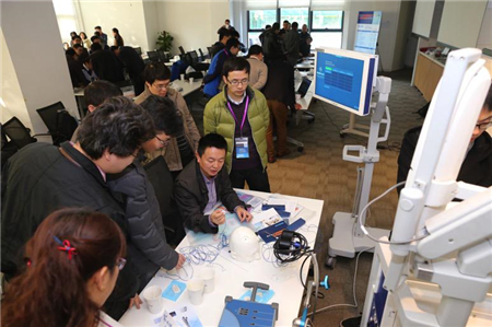 13日的会议移师复旦大学附属华山医院举行,首先由华山脑胶质瘤中心吴劲松教授介绍华山医院与深圳美德公司联合研发的脑功能视听觉脑功能刺激系统和唤醒手术脑功能刺激系统。