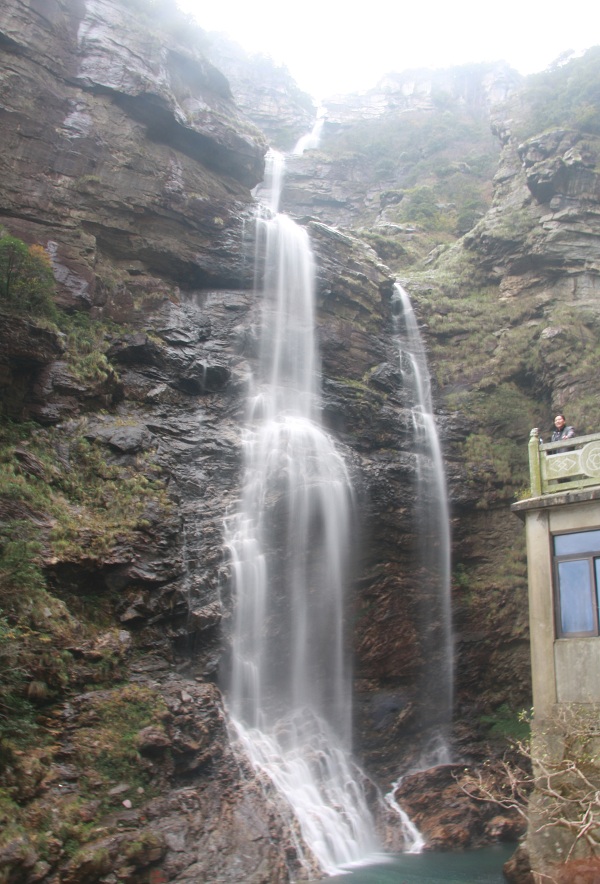 “飞泉三叠下,龙走碧潭渊;一径飘寒雨,千林散绿烟。”这首诗描写的正是三叠泉,三叠泉位于五老峰下,飞瀑分三叠飞泻而下,落差共155米,极为壮观,慑人魂魄。站在观瀑亭抬头仰望,三叠泉抛珠溅玉,宛如白鹭千片,上下争飞;又如百副冰绡,抖腾长空,万斛明珠,九天飞洒。上叠如飘雪拖练,中叠如碎玉摧冰,下叠如玉龙走潭。